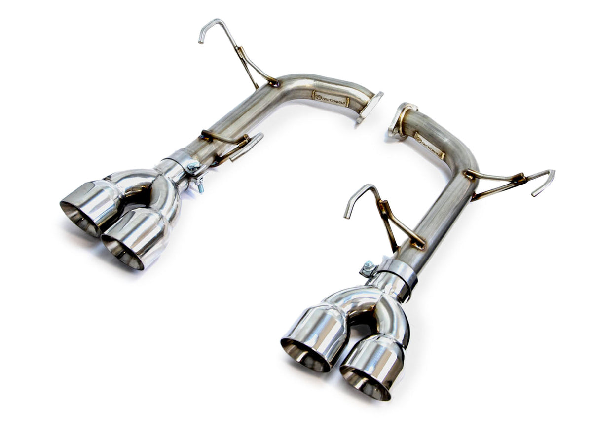 FactionFab axle back exhaust systems feature premium 2.5” CNC mandrel-bent 304-L stainless steel tubing, robust 3/8” laser-cut stainless-steel flanges for a perfect fit-and-seal and are hand TIG welded for maximum durability and reliability. These exhausts directly replace the stock muffler section (note: not compatible with SPT exhaust systems), and each kit includes all necessary hardware and gaskets for a true bolt-on installation.