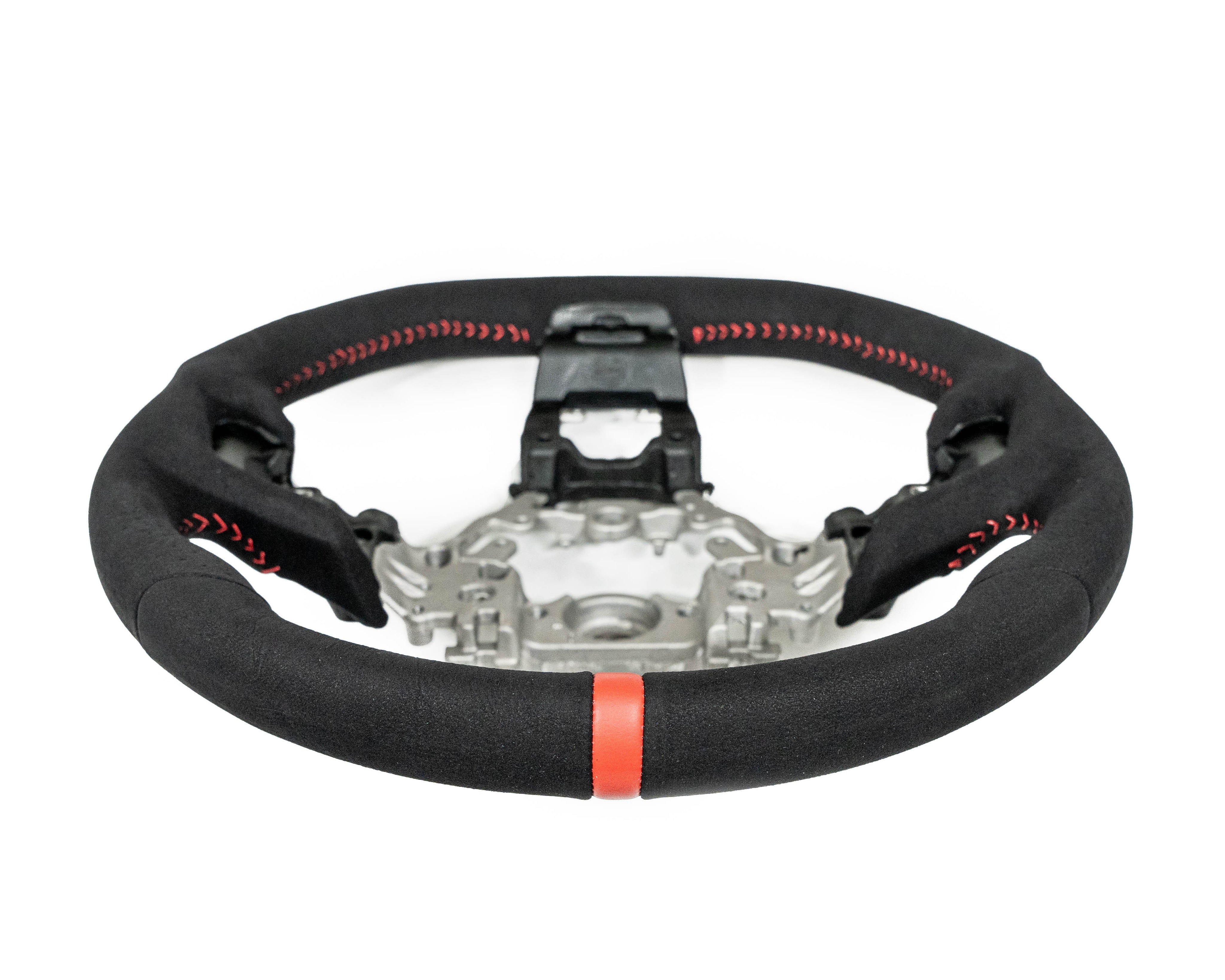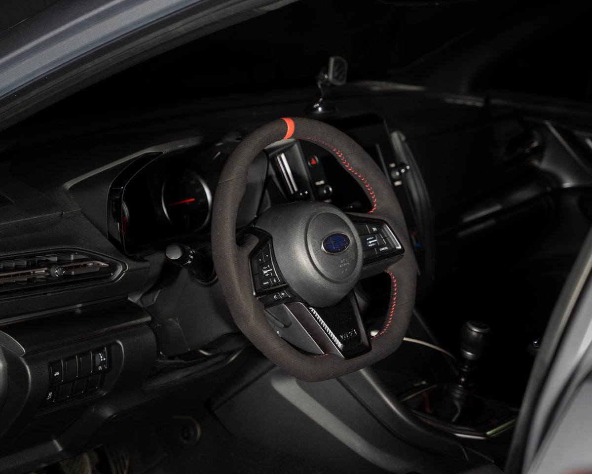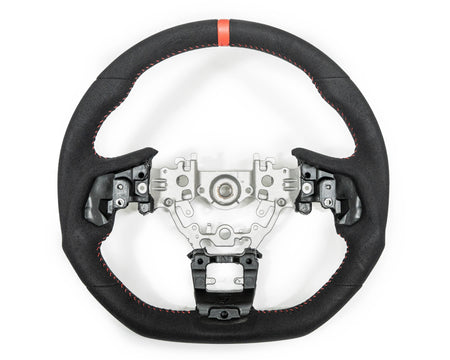 This Steering Wheel has been designed to provide the interior of your vehicle with a modern yet aggressive look while providing the driver with a race-inspired feel. The factory WRX wheel leaves much more to be desired, and as the car starts to age the materials begin the breakdown and wear out around the main contact areas. The Faction Fab steering wheel is a 100% factory replacement in higher quality and better feeling design to improve the look, feel, and your driving experience. These wheels allow you to simply remove the stock unit and replace it with the Faction Fab, and the factory airbag and controls are simply swapped over using basic hand tools. The steering wheels are available in several materials to suit your individual preference and are hand-stitched and assembled for the highest of quality and consistency. The wheels feature a D shape flat bottom design that offers a sporty feel and look. In addition, the wheels are slightly thicker than stock to give you better control and feel in your hands, which makes for an amazing driving experience when combined with the contoured shape at 3 and 9 o’clock grips.